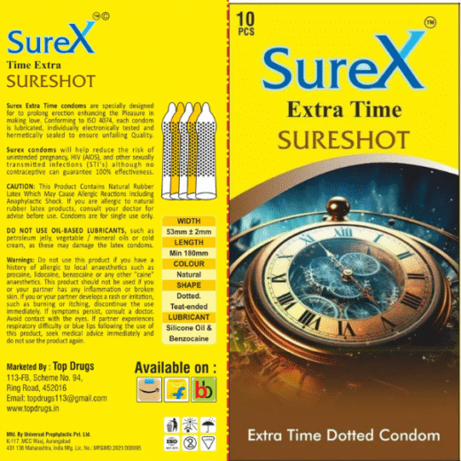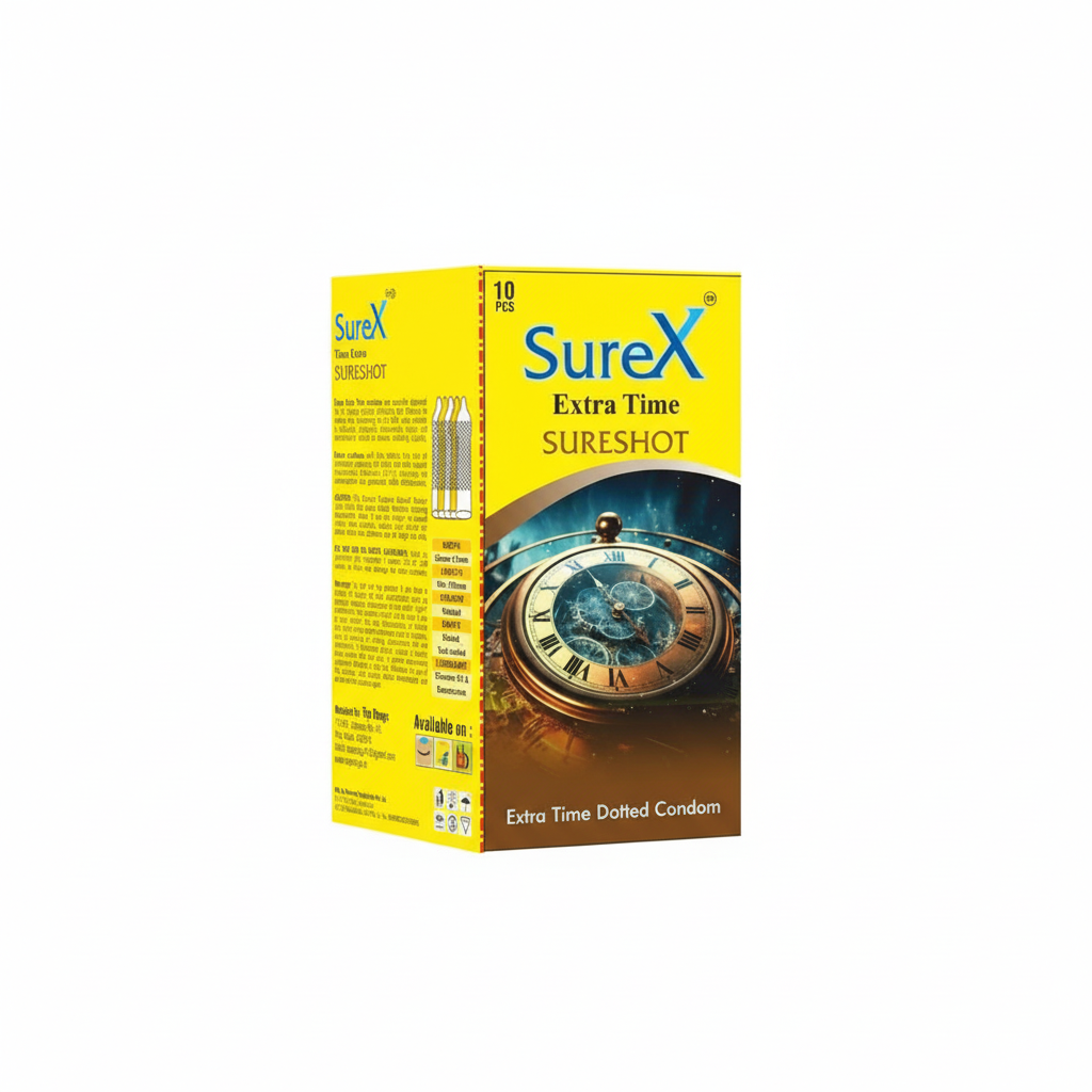 ₹1,580.00Current price is: ₹1,580.00.Surex 10 Pcs Extra Time Sureshort Condom